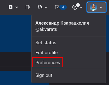 Откройте страницу настроек вашего аккаунта. Для этого нажмите на пиктограмму вашего аккаунта в правом верхнем меню и далее выберите пункт "Settings".