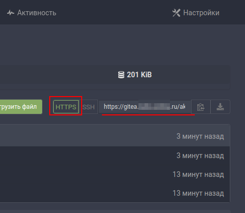 На момент написания документации Gitea не поддерживает доступ к исходному коду из приватного (непубличного) репозитория по токенам, поэтому для корректной авторизации необходимо использовать basic-auth. Для этого, вставьте в начало адреса логин и пароль вашего пользователя.