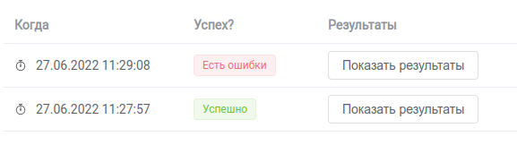 Кнопка "Показать результаты" позволяет вернуться к просмотру результатов одного из предыдущих запусков.